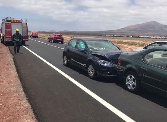 Según informa el Consorcio insular de Seguridad y Emergencias del Cabildo de Lanzarote, al llegar al lugar del servicio los bomberos comprobaron que se trataba de un accidente por alcance en el que resultaron implicados tres vehículos.