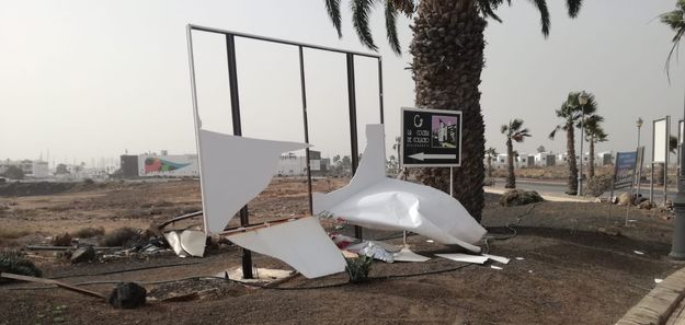 Según la información trasladada a este diario, a primera hora todas las playas del sur pasaron a bandera roja por el fuerte oleaje y por el viento. En la Avenida de Papagayo, en Playa Blanca, se avisó en seguida de que habían caído varias farolas. También en esa zona un cartel de publicidad saltó por los aires.