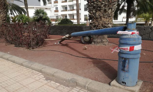 Por si no hubiera suficiente este fin de semana con la calima, la Agencia Estatal de Metereología (AEMET) acertó cuando predijo que iba a haber viento intenso en la madrugada del sábado al domingo. Dicho y hecho. Un vendaval que ha provocado todo tipo de destrozos a lo largo y ancho de Lanzarote: farolas en el piso, carteles volando, árboles rotos... La peor parte de la historia climatológica se la ha llevado el sur de la Isla, especialmente Playa Blanca, donde ni siquiera las navieras que operan con Corralejo, en Fuerteventura, se han atrevido a sacar sus barcos por el estado de la mar.
