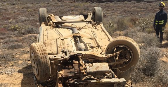 Los bomberos del Consorcio de Seguridad y Emergencias del Cabildo tuvieron que ir este viernes a una de las carreteras de la Isla para asistir a un conductor que les habían dicho que había quedado atrapado en el interior del vehículo que viajaba. Ocurrió sobre las 11.30 horas, cuando fueron alertados de que se había producido un accidente en la carretera que va de Guatiza a la zona de Los Cocoteros, en el municipio de Teguise.