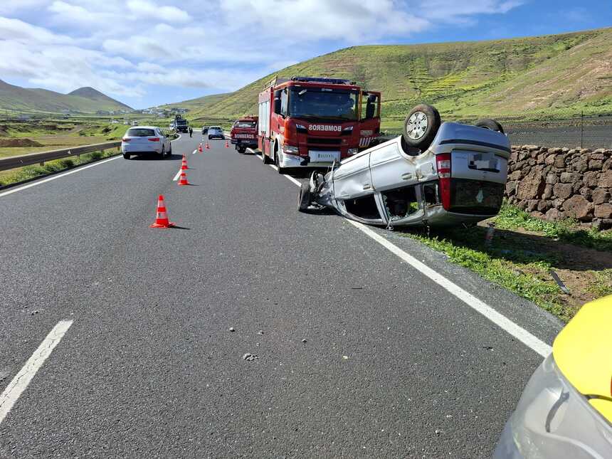 Un vehículo ha volcado en la tarde de este martes en la LZ-702 en Femés.