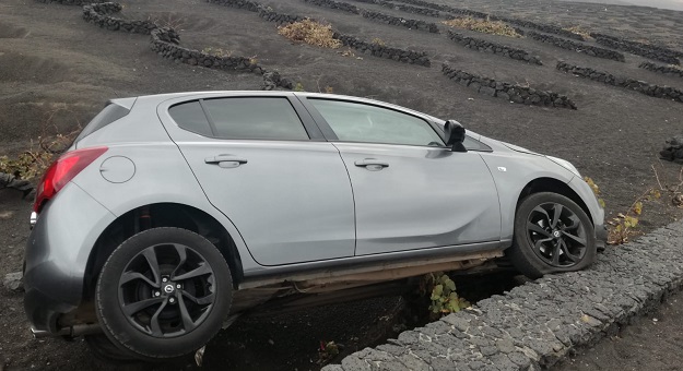 Un vehículo ha volcado este jueves en la zona de cultivo de La Geria sin que los pasajeros que lo ocupaban hayan sufrido daños de consideración.