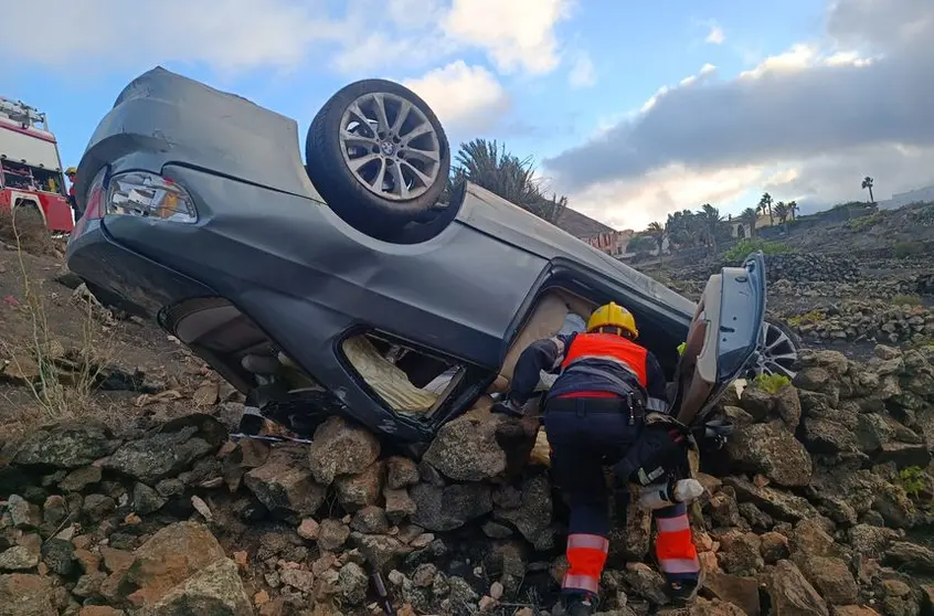 Un vehículo ha volcado este viernes por la tarde cuando circulaba por la carretera que une Tías con Masdache, sin que en principio se haya podido averiguar si hay alguna persona herida como consecuencia del fuerte impacto.