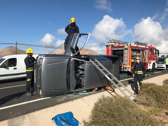 El vuelco de un vehículo en la carretera LZ-20 deja a tres personas atrapadas en el interior