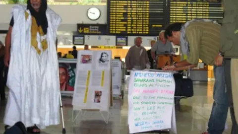 Un desvanecimiento de Haidar interrumpió su reunión con el representante de Moratinos. Pilar Bardem pide la intervención del Rey y la abogada de Haidar, Inés Miranda, solicita la “intervención urgente” del presidente del Gobierno de España, José Luis Rodríguez Zapatero, para que la huelga de hambre no termine en “una tragedia”
