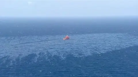 La mancha se encuentra ya a 92 kilómetros de las costas canarias. Desde que el tiempo lo posibilite Salvamento Marítimo intentará llevar a cabo la recogida de fuel