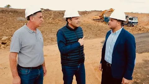 El vicepresidente y consejero de Obras Públicas, Jacobo Medina, supervisa con el alcalde de Tías, José Juan Cruz, las obras que la Institución insular está realizando en el municipio entre las que destaca la remodelación de la cancha de lucha