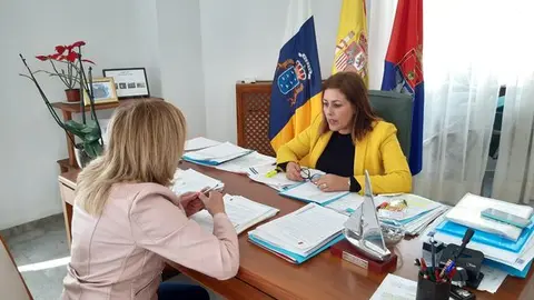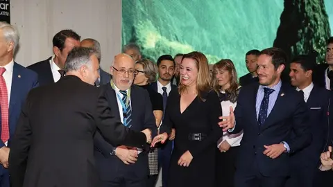 La presidenta del Cabildo, María Dolores Corujo, y el consejero de Promoción Turística, Ángel Vázquez, recibieron en el mostrador de la isla al presidente del Gobierno de Canarias, Ángel Víctor Torres, y a la consejera de Turismo del Ejecutivo autonómico, Yaiza Castilla
