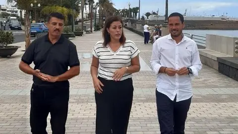 La alcaldesa Astrid Pérez estuvo acompañada por José Juan Ramírez, hijo del ex alcalde y presidente del Cabildo, y Juana y Carlos Manrique, hermanos del artista que nació en el 1919 junto al Charco de San Ginés