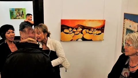 La pintora suiza Brigitte Riesco enseña sus obras más bucólicas con la mirada puesta en Lanzarote. La exposición puede visitarse hasta el 28 de diciembre en la Casa de la Cultura sureña
