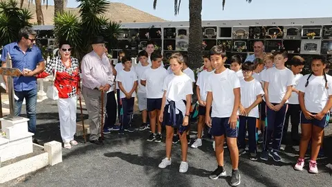 Los trabajadores de los Centros tributan un sentido homenaje al genio desaparecido hace hoy 26 años, en el que participaron los alumnos del CEIP San Juan, de Haría, la periodista lanzaroteña Herminia Fajardo y el timplista Domingo Rodríguez “El Colorado”
