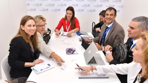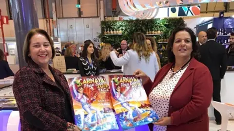 La delegación lanzaroteña, encabezada por Luis Arráez, en calidad de vicepresidente del Cabildo, recibió en el stand de la isla la tradicional visita del presidente del Gobierno de Canarias, Fernando Clavijo, que estuvo acompañado por el consejero de Turismo del Ejecutivo canario, Isaac Castellano