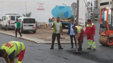 Los operarios asfaltan este martes la calle Coronel Bens, después trabajarán en Manolo Millares y el viernes en la rotonda frente a la Escuela de Pesca