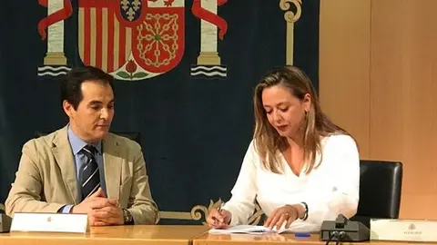 La alcaldesa, María Dolores Corujo, ha firmado junto al secretario de Estado de Seguridad el acuerdo de colaboración entre el Ministerio del Interior y el Ayuntamiento