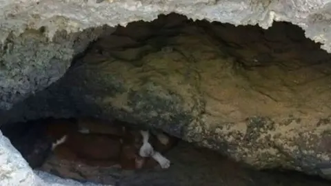 El Ayuntamiento colaboró llevando al lugar una máquina que pudiera levantar una enorme piedra sin causar daño a los animales