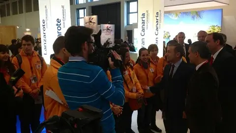 El presidente del Gobierno de Canarias, Paulino Rivero, visitó el stand que representa a la isla, e instó al Ministerio de Fomento a reducir las tasas aeroportuarias para incrementar la competitividad del sector turístico del archipiélago
