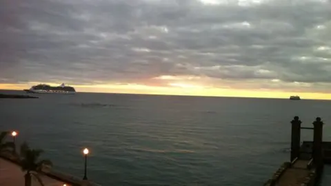 Uno de los tres cruceros permanece atracado en el muelle nuevo. A lo largo del día otros seis barcos de mercancías operarán en el muelle con contenedores, carga rodada y graneles líquidos