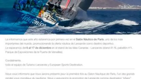 Es la primera ocasión que Islas Canarias y Lanzarote estarán presentes en la prestigiosa muestra parisina, la mayor y más importante de cuantas se celebran en Europa relacionadas con el mar