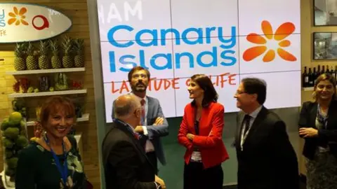 La consejera de Turismo, Cultura y Deportes del Gobierno de Canarias, María Teresa Lorenzo, inauguró el pabellón del Archipiélago y adelantó “las grandes perspectivas que se tienen para la próxima temporada de invierno en este mercado, que permitirán superar los 4 millones de turistas británicos”