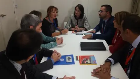 La consejera de Turismo, Cultura y Deportes del Gobierno de Canarias, María Teresa Lorenzo, visitó el stand de la compañía quien fue recibida por el director comercial de Cicar, Ramón Valiente
