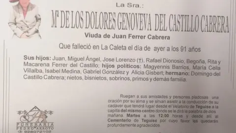 Que falleció en La Caleta a los 91 años de edad. D.E.P. María de los Dolores Genoveva del Castillo Cabrera 9/7/23