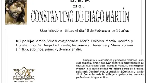 D.E.P. Constantino de Diago Martín 22/2/17 Falleció en Bilbao el día 16 de febrero de 2017 a los 35 años