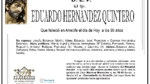 D.E.P. Eduardo Hernández Quintero 22/2/17 Falleció en Arrecife el 22 de febrero de 2017 a los 95 años