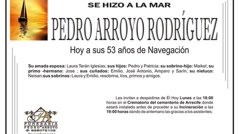 D.E.P. Pedro Arroyo Rodríguez Crónicas 15/4/19 Se hizo a la mar y falleció este 15 de abril de 2019, a los 53 años de edad