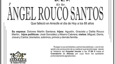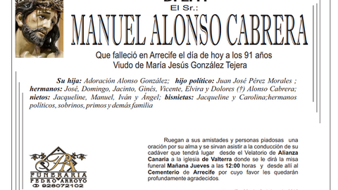 D.E.P. Manuel Alonso Cabrera Crónicas 30/10/19 Que falleció en Arrecife el día de hoy, 30 de octubre de 2019, a los 91 años de edad