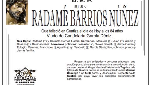 D.E.P. RADAMÉ BARRIOS NÚÑEZ Crónicas 13/7/19 Que falleció en Guatiza este sábado, 13 de julio de 2019, a los 84 años de edad