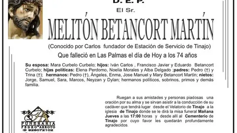 D.E.P. Melitón Betancort Martín Crónicas 18/9/19 Que falleció en Las Palmas este miércoles, 18 de septiembre de 2019, a los 74 años de edad