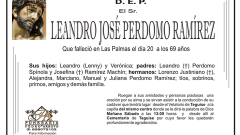 D.E.P. Leandro José Perdomo Ramírez Crónicas 23/11/18 Que falleció en Las Palmas de Gran Canaria el día 20 de Noviembre de 2018 a los 69 años de edad