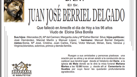 D.E.P. Juan José Berriel Delgado Crónicas 17/12/18 Que falleció en Arrecife en el día de hoy, 17 de diciembre de 2018, a los 96 años de edad