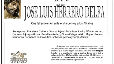D.E.P. José Luis Herrero Delfa 25/4/17 Que falleció en Arrecife el 25 de abril de 2017 a los 70 años de edad
