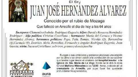 D.E.P. Juan José Hernández Álvarez 29/8/17 Conocido por el rubio de Mozaga. Falleció en Arrecife este martes, 29 de agosto de 2017, a la edad de 64 años