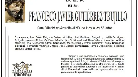 D.E.P. Francisco Javier Gutiérrez Trujillo 30/8/17 Que falleció en Arrecife este miércoles, 30 de agosto de 2017, a los 53 años de edad