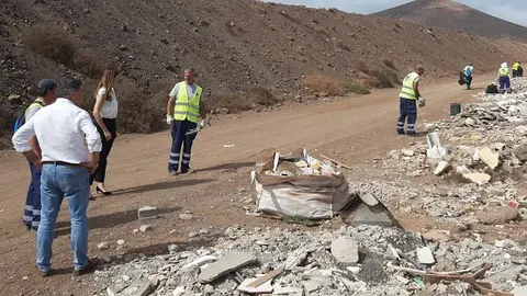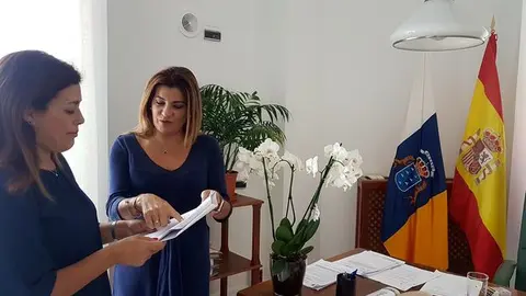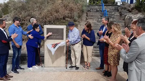 La alcaldesa Astrid Pérez estuvo acompañada por José Juan Ramírez, hijo del ex alcalde y presidente del Cabildo, y Juana y Carlos Manrique, hermanos del artista que nació en el 1919 junto al Charco de San Ginés