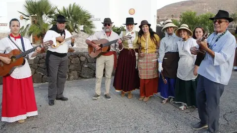 Romeras y romeros y grupos de toque y baile colman de alegría el camino que los lleva al encuentro con la Virgen. Carros engalanados dan vistosidad a la romería ofrenda de honra a la patrona del pueblo