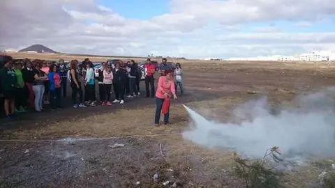 Para impartir la parte práctica, el servicio de bomberos preparó una bandeja de fuego con el fin de que los docentes practicasen los conocimientos adquiridos