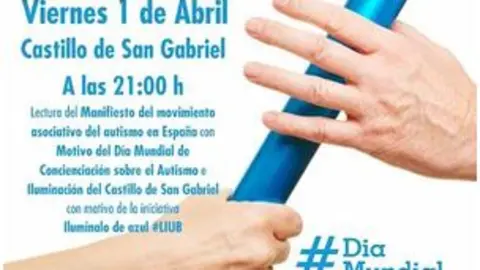 El viernes 1 de abril a las 21:00, luces azules se adueñarán del Castillo de San Gabriel, mientras de fondo sonará el tema “Azul” de Cristian Castro y se procederá a la lectura del Manifiesto del movimiento asociativo del autismo en España