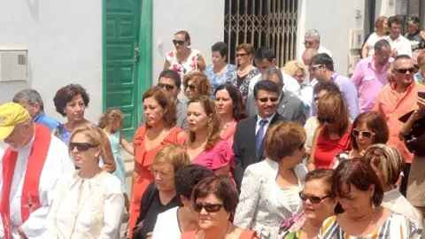 La alcaldesa y la Corporación Municipal, junto a numerosas autoridades civiles, militares y vecinos, acompañaron a San Bartolomé en procesión al mediodía