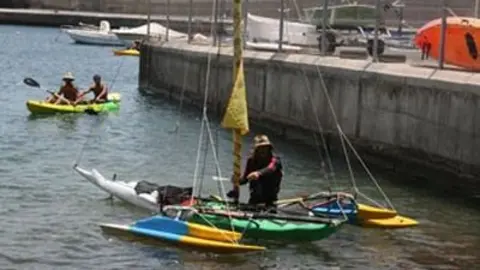 Toño Jiménez, el Fruti, y su equipo de apoyo salieron rumbo a El Hierro, donde finalizarán su singladura que unirá todas las Islas Canarias en una rudimentaria embarcación autoconstruida con materiales reciclados