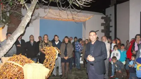 El alumbrado que mezcló, juego de luces con láseres, figuras tradicionales y ángeles casi a tamaño natural en la plaza principal agradó a los vecinos que se acercaron a la inauguración