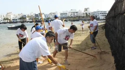 A pesar de que en un principio se apuntaron 120 voluntarios, el fuerte calor reinante este sábado en la capital de la Isla hizo que el número se redujera a 70 personas
