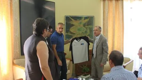 El alcalde, Cándido Reguera, y los concejales José Montelongo, Nayra Callero, Paca Toledo, Pedro Viera y Vicente Dorta, felicitaron en nombre de toda la corporación al colegiado arrecifeño por su espléndido papel en la final del Eurobasket 2011
