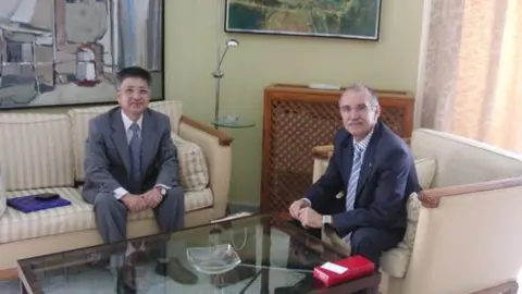El alcalde de Arrecife, Cándido Reguera, junto a los concejales de Obras Públicas y Desarrollo Local, Antonio Machín e Isabel Mesa, respectivamente, inauguraron la exposición fotográfica “Valterra, más de medio siglo proa al horizonte”