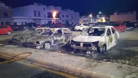 Según los bomberos, en total han ardido cinco vehículos y tres contenedores en la capital durante la madrugada