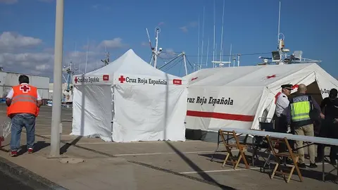 Entre los tres ocupantes mayores de edad de la patera, había dos hombres y una mujer, quien fue trasladada a un centro hospitalario con un cuadro de vómitos; el resto presentaba buen estado de salud