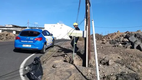 Bomberos del Consorcio, Protección Civil de Yaiza, Policía Local de Yaiza y Guardia Civil intervienen en esta emergencia declarada en la zona de Berrugo