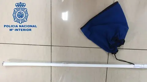 En el cacheo de seguridad, le fue intervenida una barra de aluminio y una braga de cuello de color azul